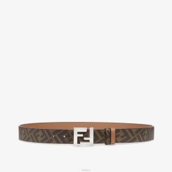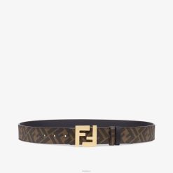 Fendi hombres cinturón reversible de piel con diseño cuadrado ff 2LH8E2442 accesorios marrón