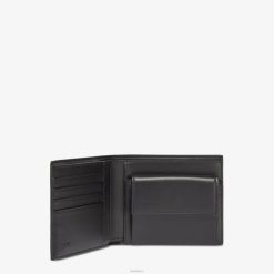 Fendi hombres cartera plegable de cuero con firma de dólar estadounidense 2LH8E2615 accesorios negro