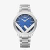 Caja redonda de 41 mm de acero inoxidable satinado y brillante en color plateado con inserción f de acero inoxidable tono sobre tono. Esfera verde degradada descentrada, índices y agujas plateados. Brazalete de acero tono sobre tono, 20/18 mm, con motivo ff grabado y hebilla desplegable.