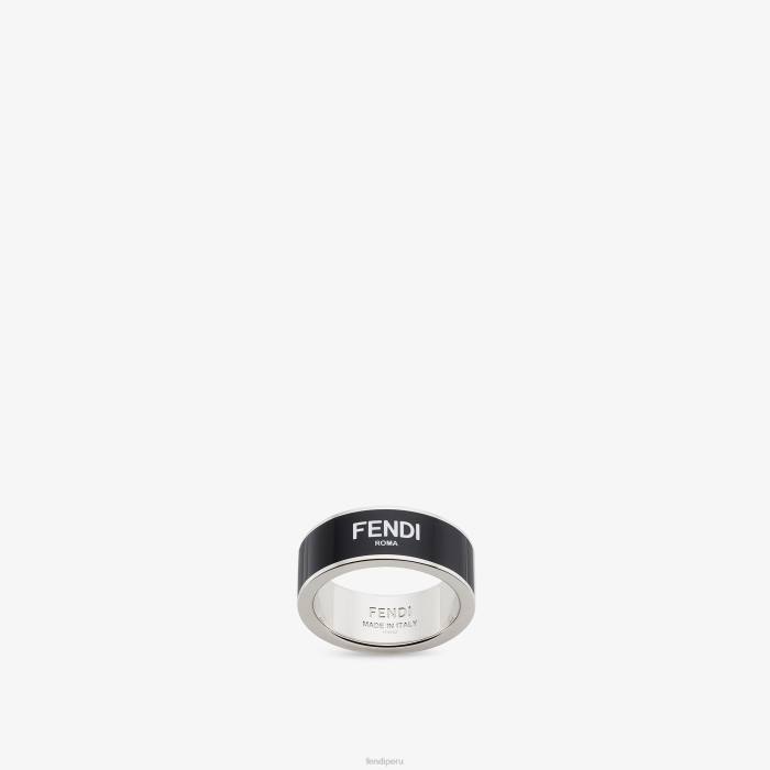 anillo de banda ancha. fabricado en metal con acabado paladio. adornado con esmalte negro y letras fendi roma.