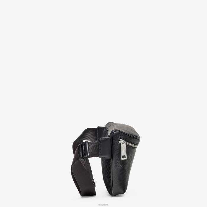 Riñonera Fendi Shadow de piel negra con motivo ff con textura de rayas. adornado con una aplicación diagonal de piel lisa tono sobre tono.