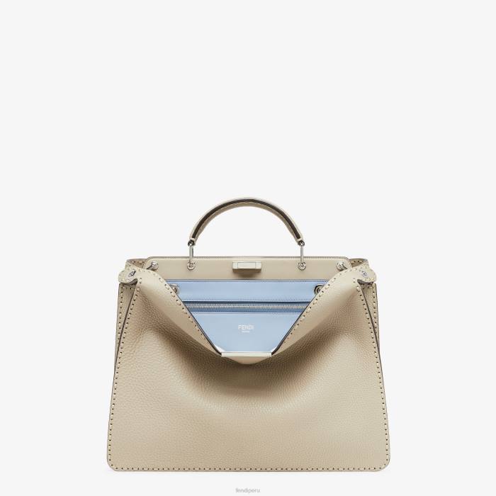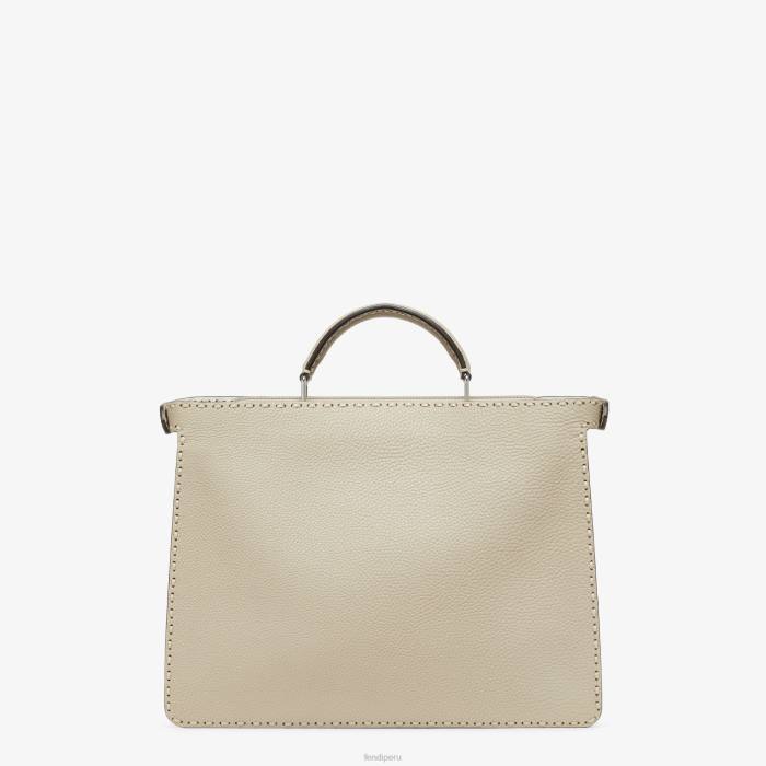 Bolso peekaboo iseeu mediano, confeccionado en piel cuoio romano beige claro rematado con costuras cosidas a mano tono sobre tono.