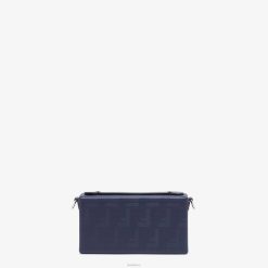 Bolso baúl baguette suave confeccionado en piel de color azul oscuro con motivo ff con textura de rayas. solapa con cierre magnético ff. adornado con cuero liso tono sobre tono.