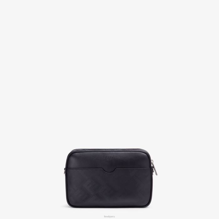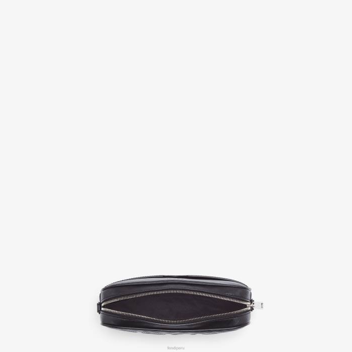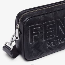 Bolso bandolera confeccionado en piel Fendi Shadow negra con motivo de rayas texturizadas ff. rematado con un logotipo de Fendi Roma en relieve.