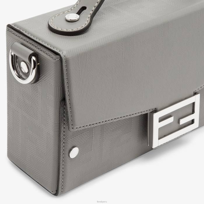 Bolso baguette baúl suave confeccionado en piel Fendi Shadow gris tórtola con motivo ff de textura a rayas. solapa con cierre magnético ff. adornado con piel tono sobre tono.
