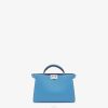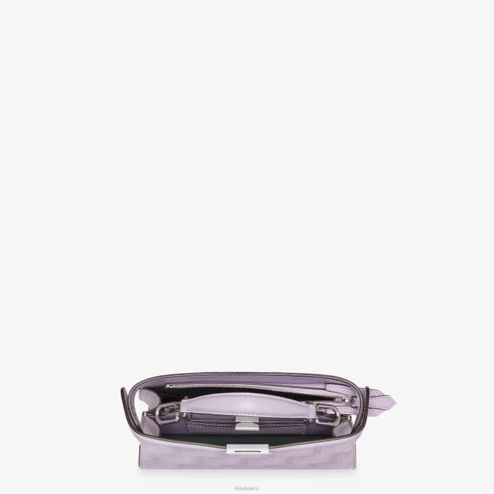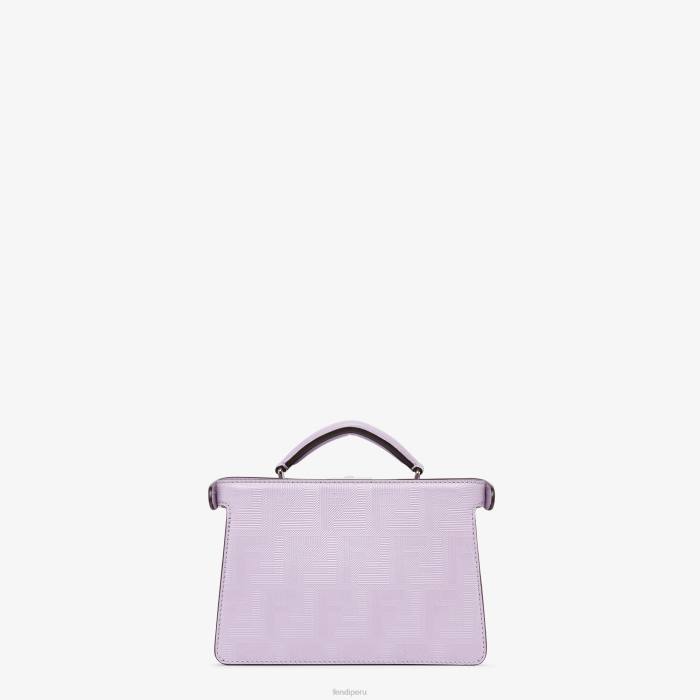icónico bolso peekaboo iseeu xcross confeccionado en cuero Fendi Shadow color lavanda con motivo ff de textura a rayas.