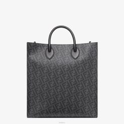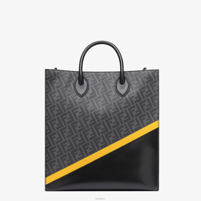 Shopper confeccionado en piel negra y tejido con motivo ff gris.