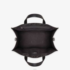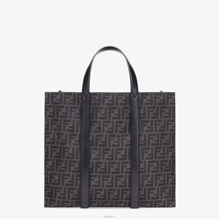 Amplio shopper confeccionado en tejido jacquard reciclado con motivo ff en gris y negro.