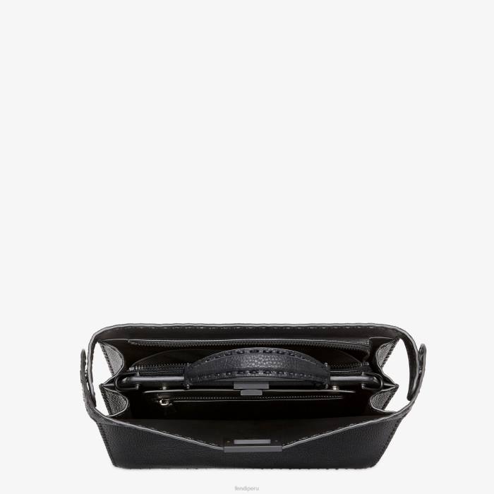 Bolso peekaboo iseeu mediano, confeccionado en piel cuoio romano negra cosida a mano.