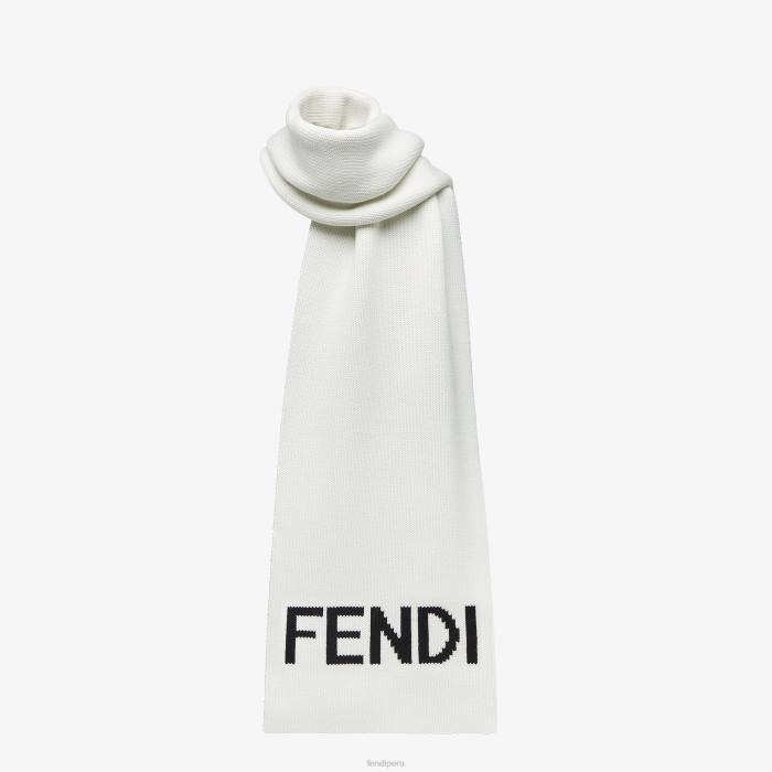 Bufanda rectangular confeccionada en lana blanca. decorado con letras fendi en jacquard en negro.
