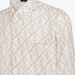 Fendi hombres camisa de lino 2LH8E2000 vestir beige