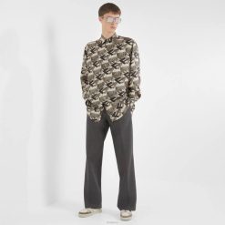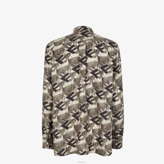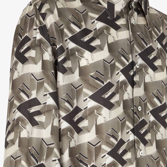camisa oversize de manga larga. cierre oculto. confeccionado en seda, con el motivo del bloque Fendi estampado en un efecto 3D en beige y marrón.