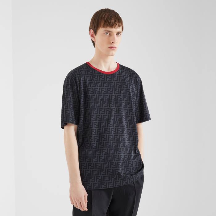 Fendi hombres Camiseta de algodón 2LH8E2088 vestir negro