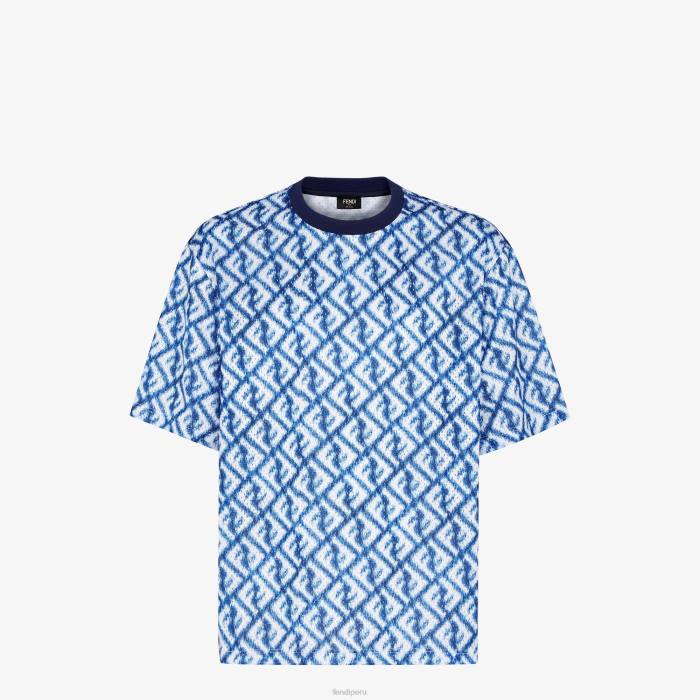 Camiseta regular fit de manga corta. Confección en malla técnica con motivo ff diagonal efecto ikat estampado íntegramente en azul y blanco. cuello redondo en azul sólido.