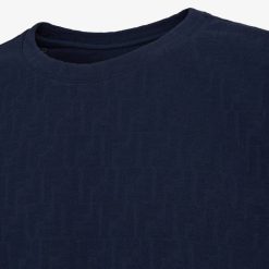Camiseta oversize de manga corta y cuello redondo. Confección en piqué azul con motivo ff por toda la prenda.