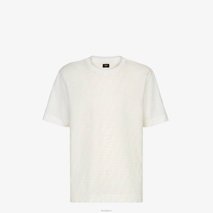 Camiseta oversize de manga corta y cuello redondo. Confeccionado con piqué de algodón blanco. decorado con motivo ff flocado tono sobre tono estampado por toda la superficie.