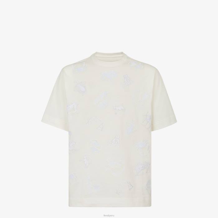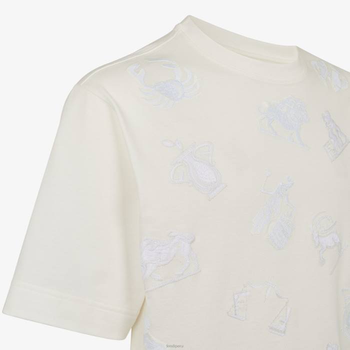Camiseta oversize de manga corta y cuello redondo. confeccionado en jersey de algodón blanco. adornado con un motivo de astrología fendi bordado en el mismo color.