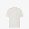 Camiseta regular fit de manga corta y cuello redondo. Confeccionado en punto de algodón lavado de color beige. adornado con una etiqueta de fendi roma bordada a juego aplicada en la parte delantera.