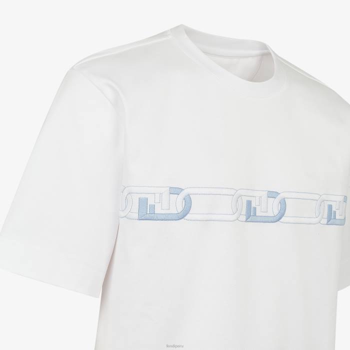 Camiseta oversize de manga corta y cuello redondo. confeccionado en jersey de algodón blanco. decorado con motivo fendi o’lock bordado en blanco y azul claro en el canesú delantero.