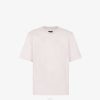 Camiseta regular fit con cuello redondo y manga corta. confeccionado en jersey de algodón blanco. adornado con detalle fendi o’lock bordado lila en el pecho.
