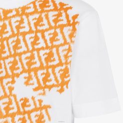 Camiseta oversize de manga corta y cuello redondo. hecho de jersey blanco. decorado con un motivo ff efecto ikat en tono naranja bordado en la parte delantera.