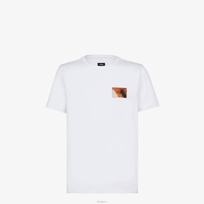 Camiseta regular fit con cuello redondo y manga corta. confeccionado en jersey de algodón blanco. adornado con un parche fendi roma bordado con hilo multicolor.