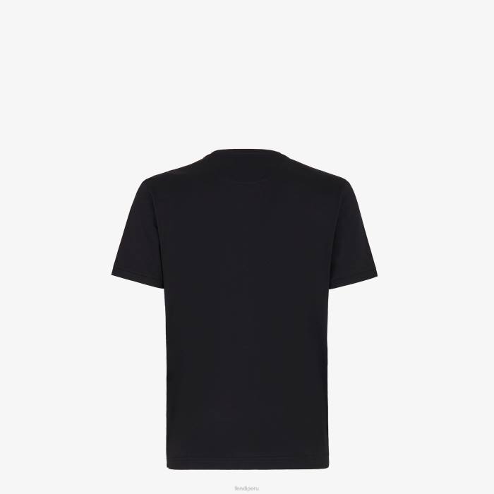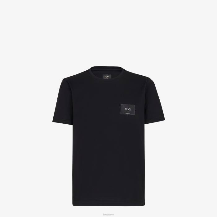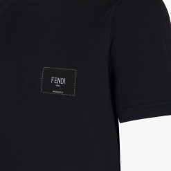 Camiseta regular fit con cuello redondo y manga corta. confeccionado en jersey de algodón negro. adornado con la etiqueta de jacquard bordada de Fendi en el pecho.