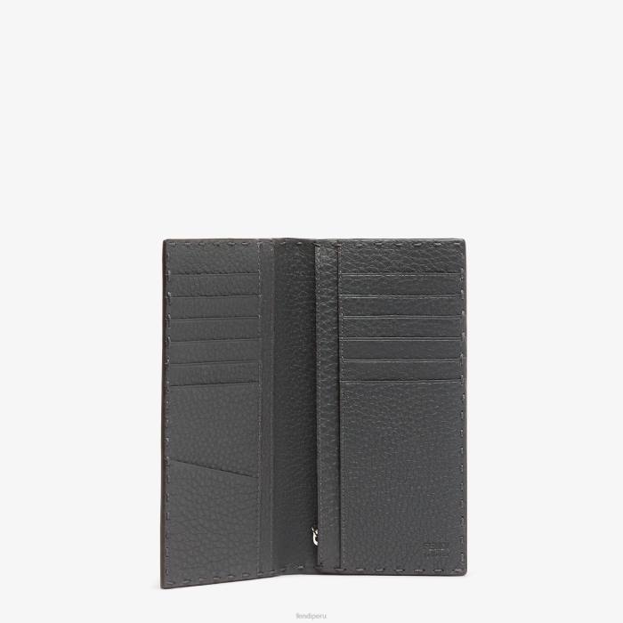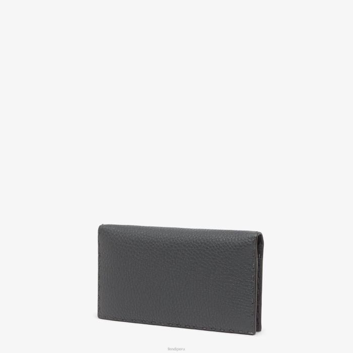 billetera continental. con un bolsillo con cremallera y diez ranuras para tarjetas. Confección en piel cuoio romano gris oscuro. adornado con letras fendi roma y bordes rematados con costuras selleria cosidas a mano. Artículos metálicos con acabado en paladio.