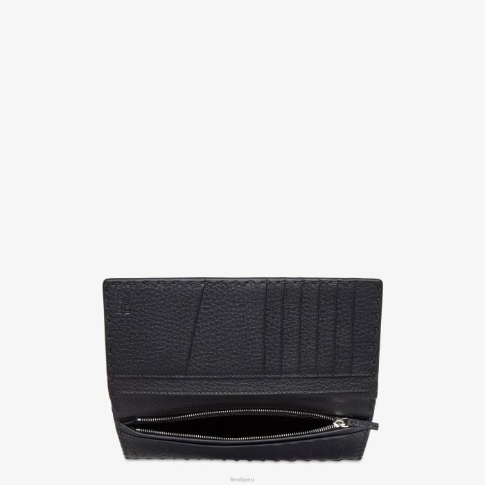 billetera continental. con un bolsillo con cremallera y diez ranuras para tarjetas. Confección en piel cuoio romano negra. adornado con letras fendi roma y bordes rematados con costuras selleria cosidas a mano. Artículos metálicos con acabado en paladio.