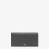 cartera con cremallera. organizado en tres compartimentos reforzados con ocho ranuras para tarjetas y un bolsillo con cremallera. Confección en tela con motivo ff marrón y tabaco. Adornado con aplicación de cuero negro y detalle de incrustaciones en beige. Artículos metálicos con acabado en paladio.