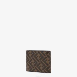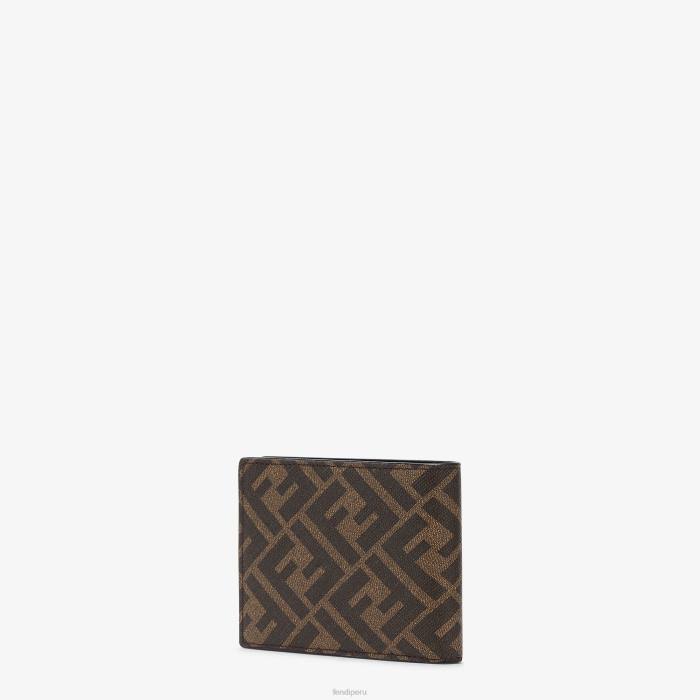 Cartera con ocho tarjeteros interiores y dos compartimentos para billetes. Confeccionado en tela con motivo ff. Detalle diagonal en piel de caimán negro. Forro de piel negra.