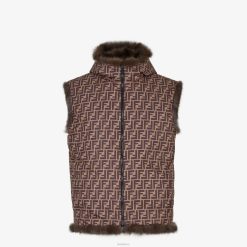 Chaleco reversible con capucha. bolsillos ribeteados. Cierre de cremallera con doble cursor. hecho de marta marrón oscuro. forro con motivo ff estampado íntegramente en marrón.