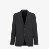 Chaqueta de abotonadura sencilla con cuello camisero y bolsillos de parche en el pecho. cierre de botón oculto. Confección en lona negra con motivo ff en jacquard por toda la prenda.