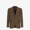Chaqueta estilo camisero con cuello solapa y manga larga. cuatro bolsillos de parche en la parte delantera. cierre a presión cubierto. Confeccionado en piel plonge color tostado. adornado con un bolsillo con cremallera en la manga derecha. Etiqueta fendi roma en jacquard en el dobladillo. forro estampado.