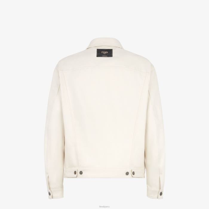 Chaqueta con cuello de pico y bolsillos con solapa en el pecho. Cierre con botones de tachuelas con la marca. confeccionado en denim de algodón blanco. adornado con una etiqueta fendi en jacquard en el pecho y la espalda.