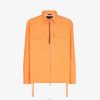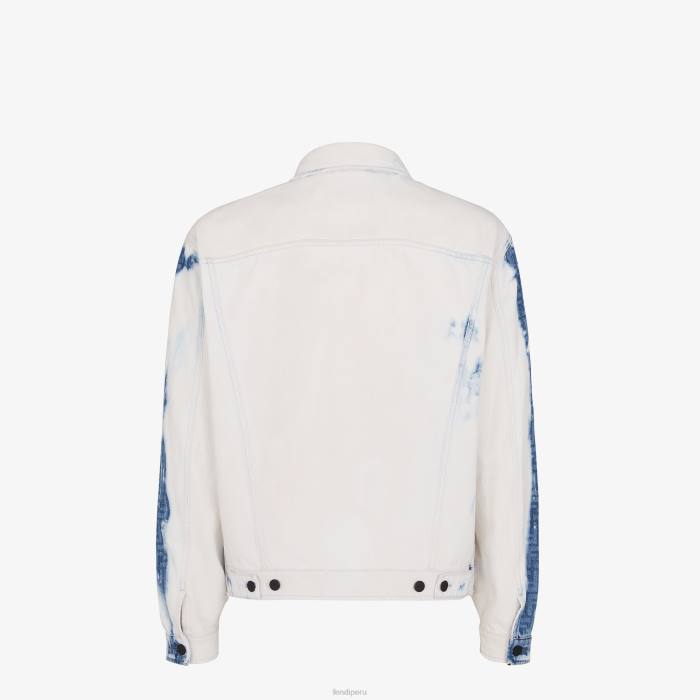 Chaqueta con cuello de pico y bolsillos con solapa en el pecho. Cierre de botón con tachuelas de marca. Confección en denim de algodón blanqueado, con detalles ff degradados en azul oscuro.