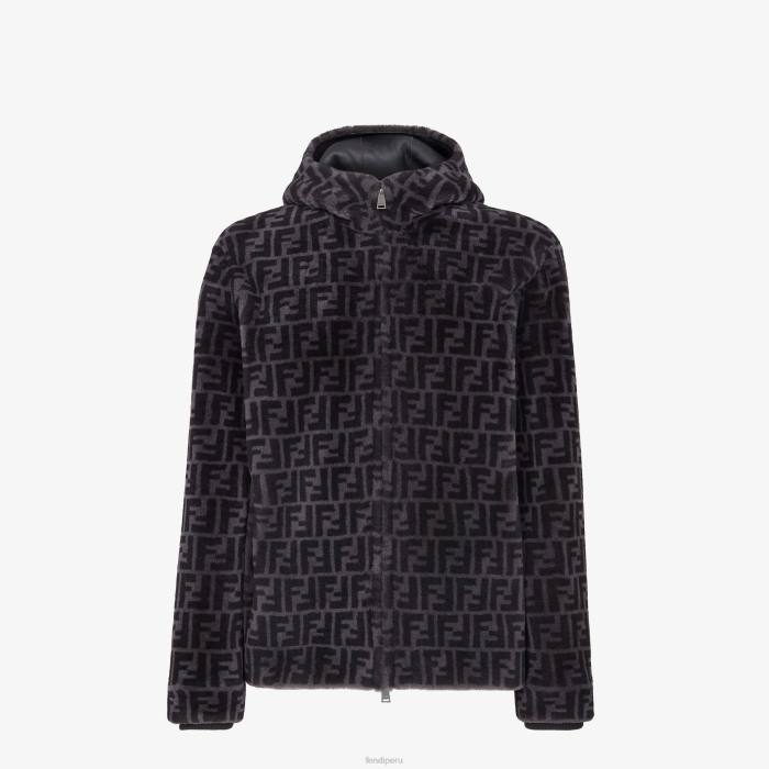 chaqueta reversible con capucha. bolsillos laterales y puños en punto elástico. Cierre de cremallera con doble cursor. Confección en piel de oveja con motivo ff íntegramente en gris y negro.