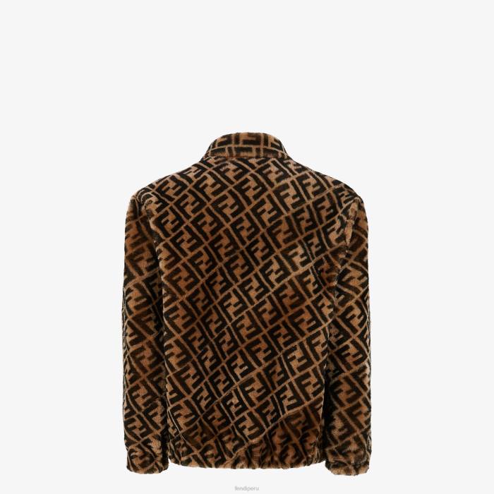 Chaqueta reversible con cuello camisero. bolsillos ribeteados. Cierre de cremallera con doble cursor. Confeccionado en borreguito marrón. Un lado está decorado con el motivo ff integral. Detalle de roma/amor en el pecho.