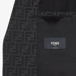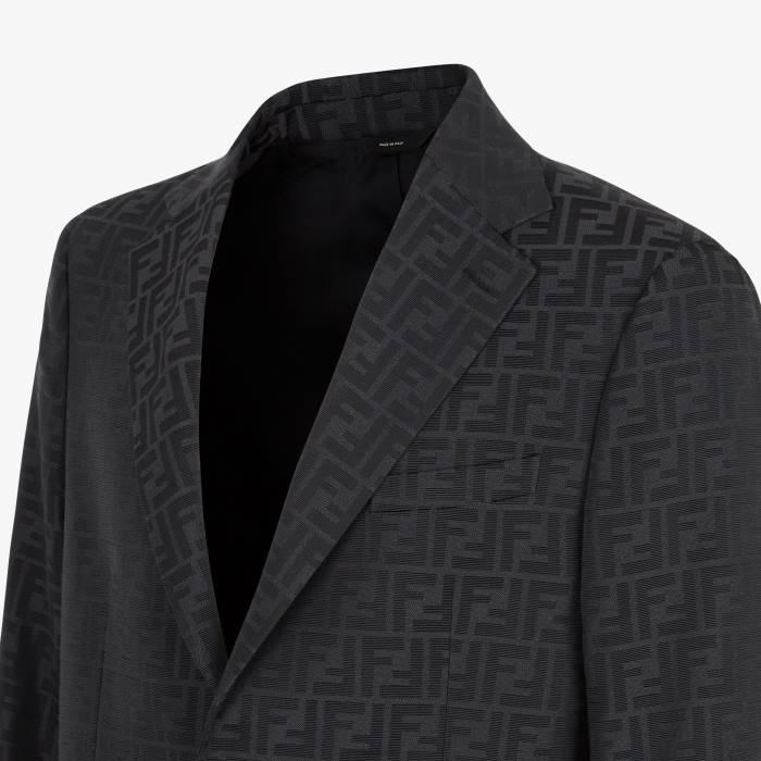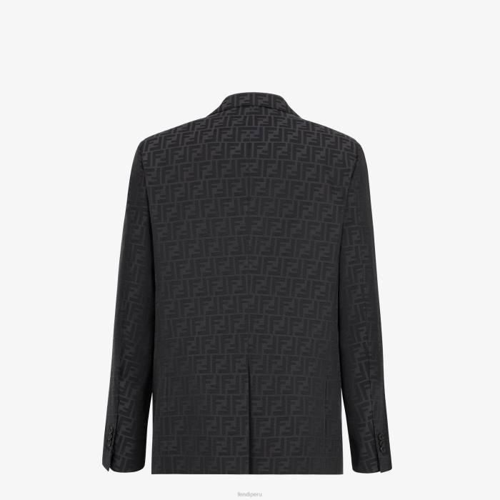 blazer cuadrado con solapas anchas. Bolsillo de ribete en el pecho y bolsillos con solapa. Cierre de dos botones y abertura en la espalda. forrado. Confección en tela negra con motivo ff jacquard negro.