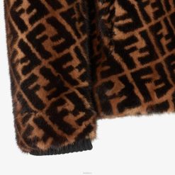 Chaqueta reversible con capucha y dos bolsillos. cierre de cremallera. Confección en visón marrón con motivo ff en diagonal estampado por toda la prenda. Interior en piel napa.