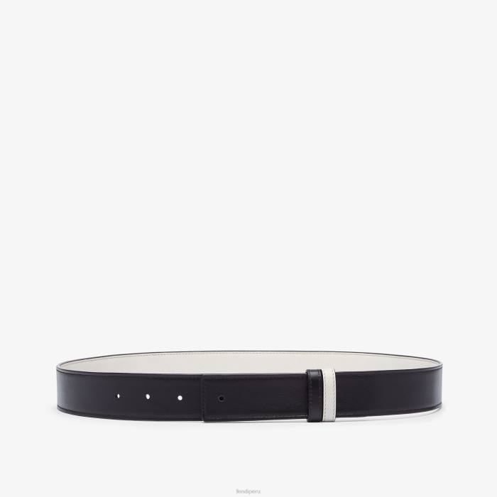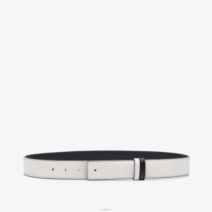 Cinturón reversible que se completa con una hebilla con tachuelas. Confección en piel Fendi Shadow en color gris claro con motivo ff de textura a rayas. Forro de piel negra.