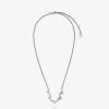 Collar con motivo f integral y cierre con pequeño clip. Fabricado en metal con acabado paladio. adornado con una f decorada con cristales blancos.