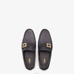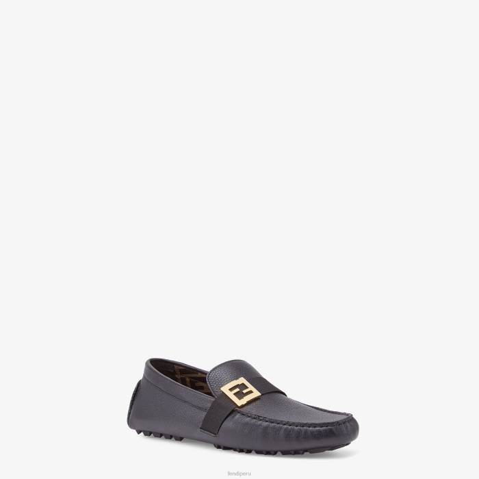 mocasines de conducción. Suela de guijarro flexible. Realizado en piel romana negra. Cinta tonal con detalle de ff en metal satinado. Forro de tela jacquard ff.