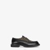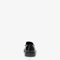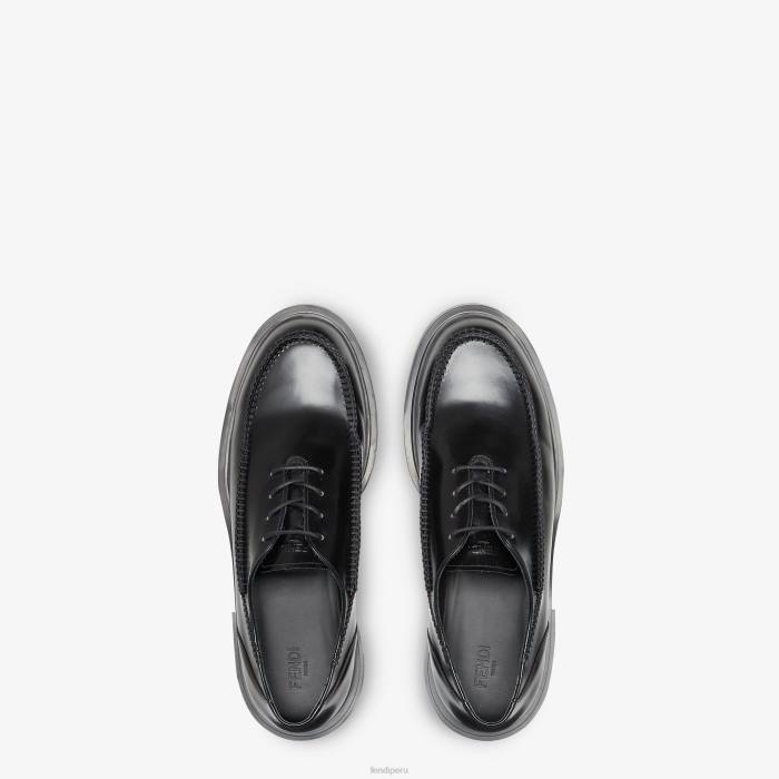 Zapatos con cordones con delantal cosido a mano y cierre con cordones. fabricado en cuero negro. suela de goma con detalle f grabada en el lateral.
