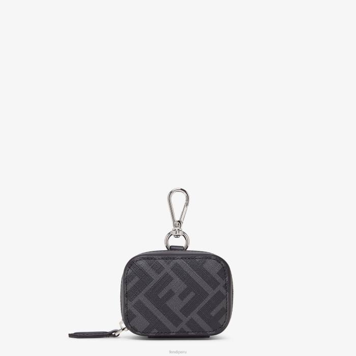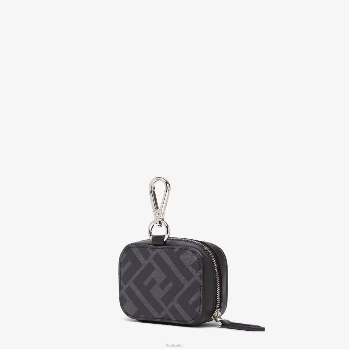 Funda porta auriculares fabricada en piel negra con detalles en tejido ff negro y gris. clip con logo fendi grabado. Artículos metálicos con acabado en paladio.