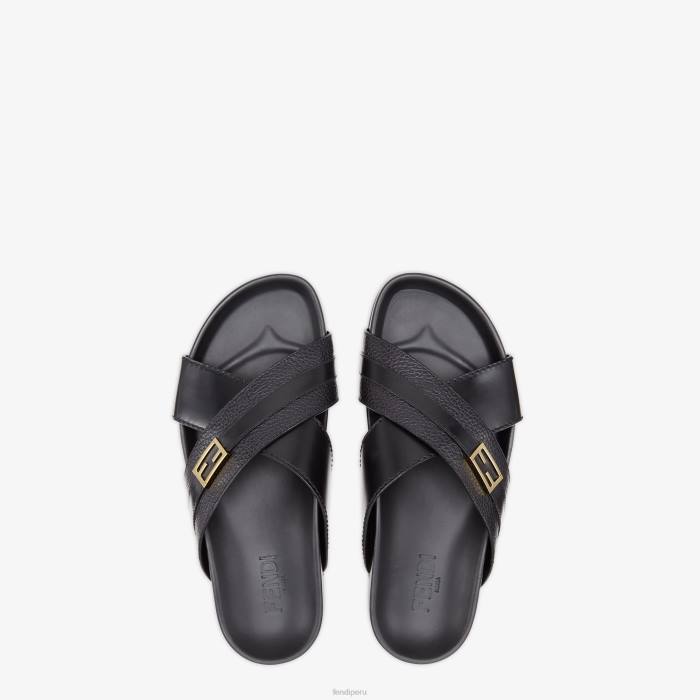Fendi hombres diapositivas de cuero 2LH8E2281 zapatos negro
