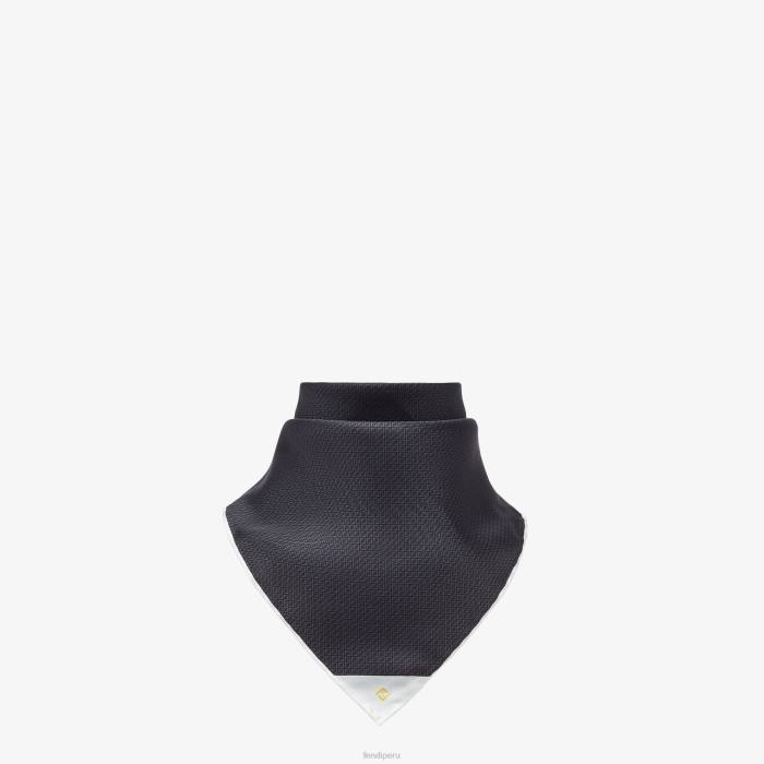 Fular cuadrado confeccionado en seda. acabado con motivo micro ff en negro y gris antracita.