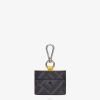 Estuche para llaves con clip y anilla con logo. Confección en cinta de cuero negra y respaldo en pu con motivo ff gris y negro. Artículos metálicos con acabado en paladio. este estilo se puede personalizar con tus iniciales.