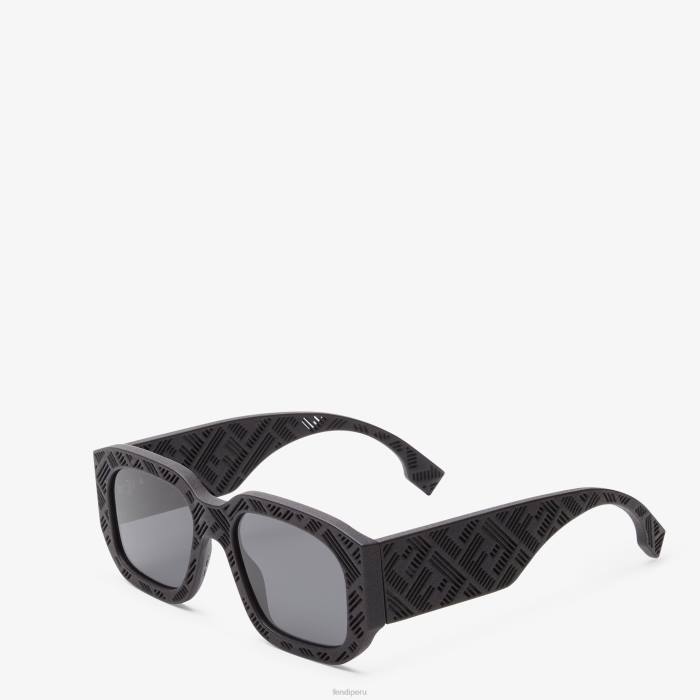 Anteojos rectangulares Fendi Shadow. Construcción en nailon negro mediante técnica de impresión 3D y motivo de textura de rayas ff en toda la montura. lentes grises.