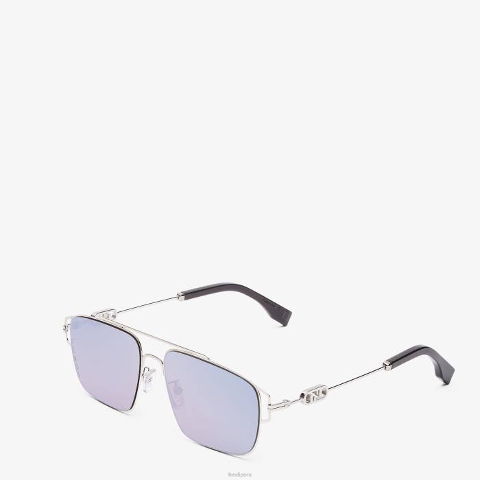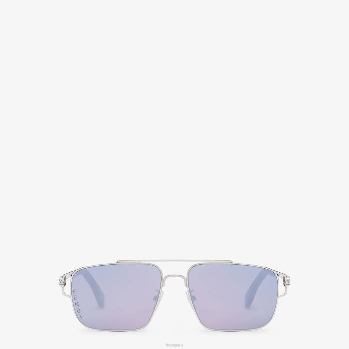 Fendi hombres Gafas de sol de metal paladio con lentes y efecto espejo violeta 2LH8E2454 accesorios moda